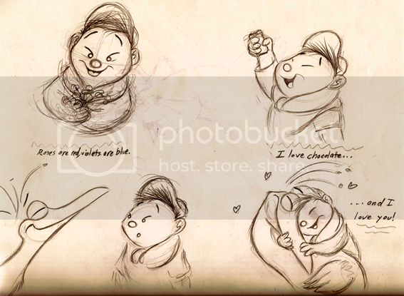 As always, great sketches! It’s really neat seeing your progression with each Russell drawing! Your Valentine card sketch is really cute! The roughness of your Carl sketches is quite cool, especially looking at with your tight line work of Russell. Same goes for your last batch of sketches, which are even rougher. A neat look inside your process. ![]()