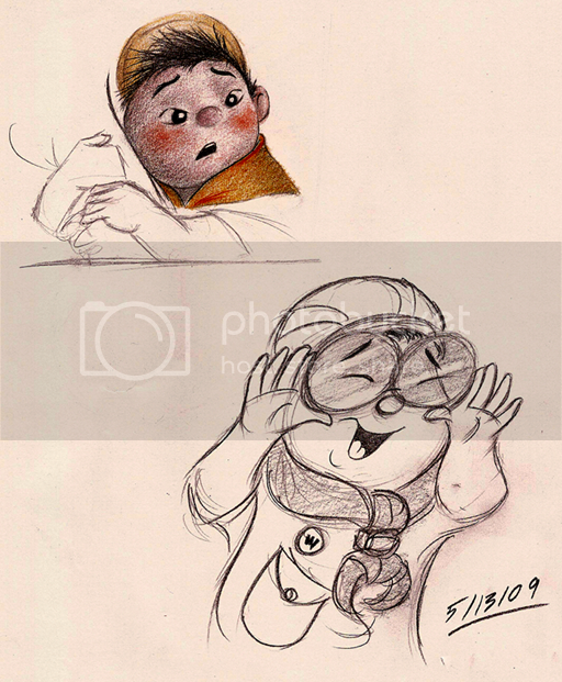 Mitch: First of all, I have to tell you something and make something clear. All of your work is so pure and sincere; beautifully brushed with your own unique style even when rendering characters already made up by someone else, and for me looking at your sweet, heartfelt sketches of Russell, it awakens some sort of childlike-wonder that I otherwise would not have felt in looking at a rendering of this same character by another artist. You set the bar so high for yourself - which is not a bad thing, by the way - and always aspire to be better than you are, because most of the time you believe that what you are is not spectacular in itself. But I want you to know that what you are already delving into in terms of artistic skill and ability is far beyond what many aspiring artists your age have the capability of. Yes, it does come with years of practice, but you have a beautiful advantage: and that is the support and equal experience of your parents in the areas of art and animation. My parents encourage me to draw and be artistic, but they don’t connect with me in the way I view films and their artwork/script writing/plot/characters the way your parents seem to. Consider yourself exceptionally blessed!