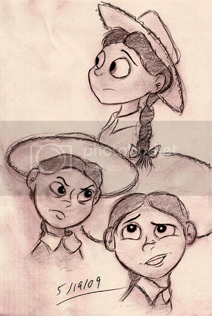 Sweet sketches of Jessie! You always show such a great range of emotions when you do character sketches like this. Keep it up!