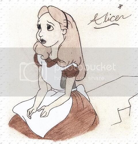 As for the drawing of Alice, I drew that in my dad’s cubicle while waiting for the Andrew Stanton seminar to arise. (“Andrew Stanton seminar”? “What the heck is she talking about?”, you say? Well, you might want to wander on over to the “The Pixar Studio & People” board for clarification…)