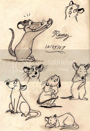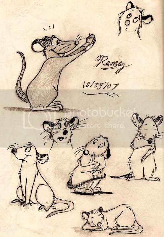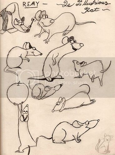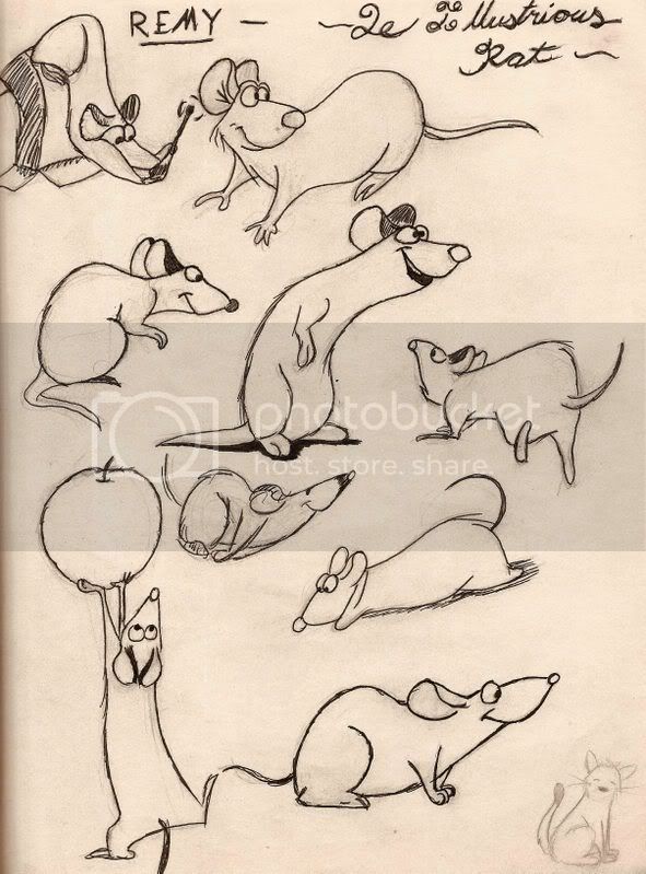 The third batch of rat sketches are actually drawings that one of the animators at Pixar Animation Studios did, and they can be found on the official Ratatouille video game for PlayStation, PC, Xbox, and other platforms. All of the credit goes to the animator; I just copied the things.