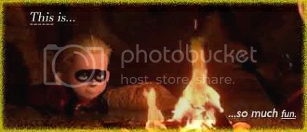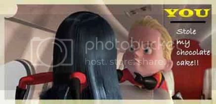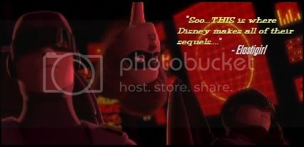 Haha! Yeah, the “Incredibles” screencaps that I did finish are…fair enough, I suppose. My sister did think of one pretty funny joke, so I used it. We just haven’t been able to collaborate lately because the only time we see each other is early in the morning and in the afternoon, and by then my sister has to do her homework, so we hardly ever get into an extremely hilarious mood anymore. It sucks! But, when we do go crazy, rest assured that we’ll churn out some…interesting stuff. ![]()