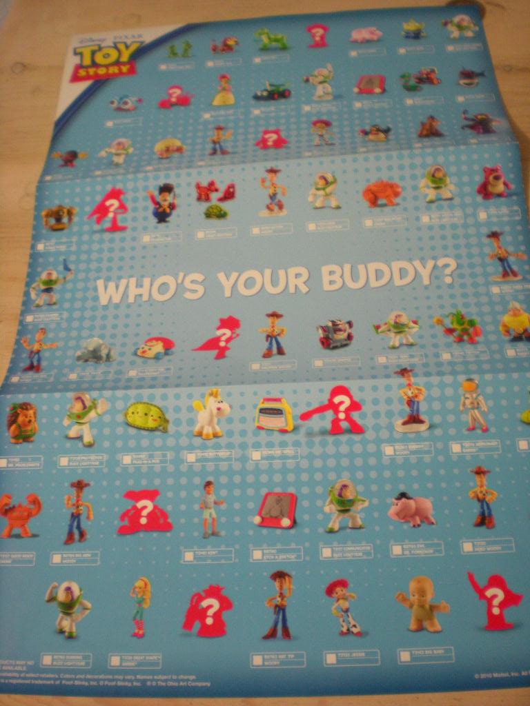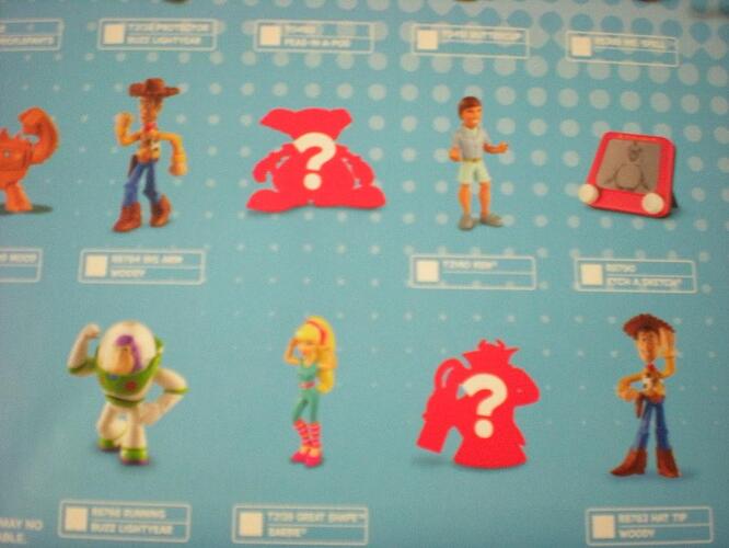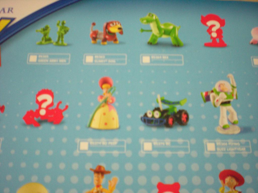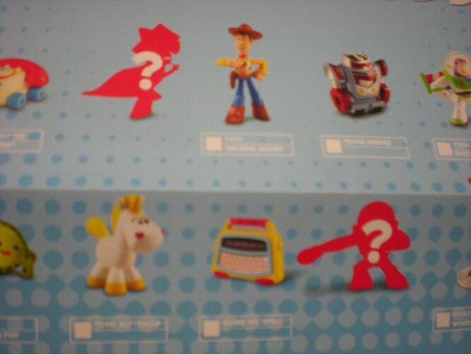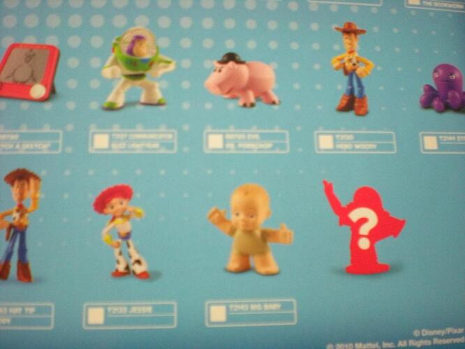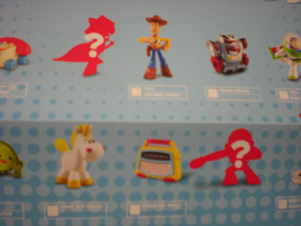 Dolly, Babyface, Chuckles, Zurg w/blaster, conehead Rex, IDK, and Spanish Buzz in order.