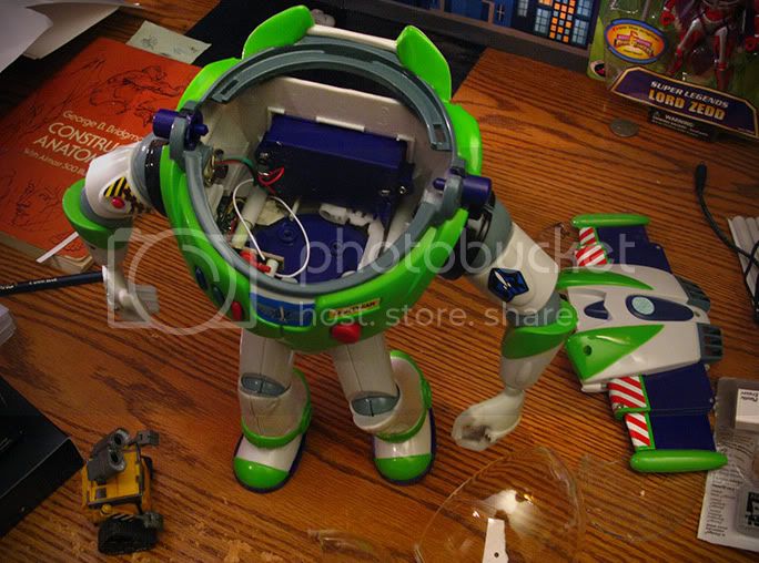 with a new buzz around the corner, this one will soon be obsolete, so I thought I’d try and pull a Sid (ok not really) and make some minor changes. you know how in the movie the helmet fully retracts? the ones in real life never do. I think its kind of impossible actually, there’s just no way it would ever fit. kinda like how Wall-e’s head and legs would never fit inside that small cube.