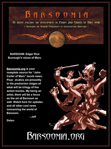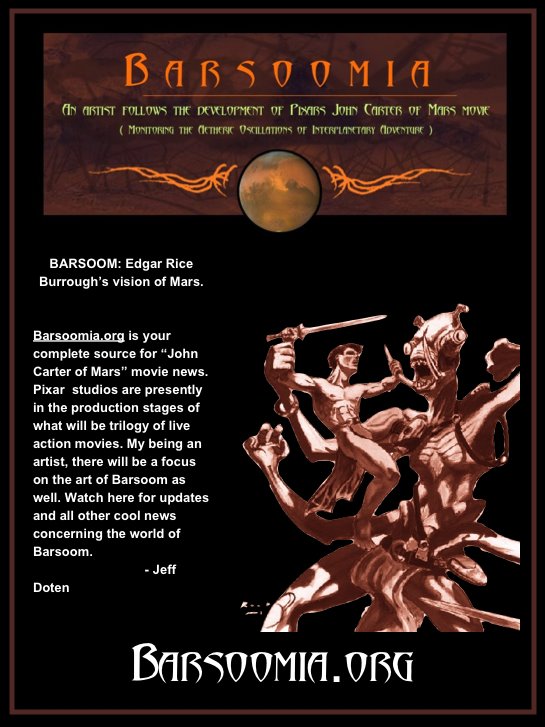 I couldn’t help it. With the announcement of Andrew Stanton’s scripting of John Carter of Mars I set up http://www.Barsoomia.org , a site tied into my main home page. I’m such a geek. Barsoom rules.