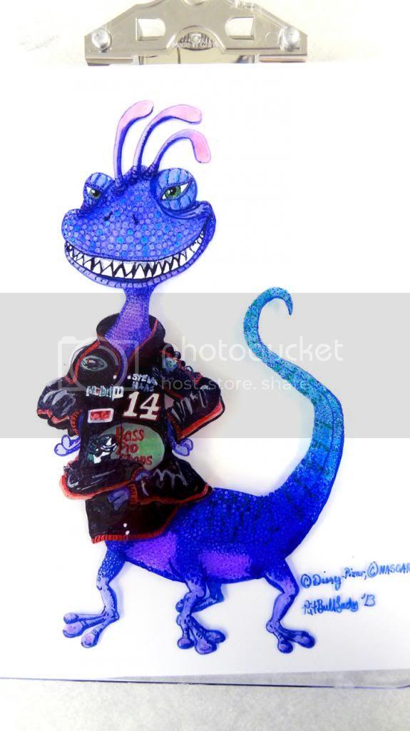 A Randall clipboard I did in Sharpies, with him wearing the jacket of my favorite NASCAR driver, Tony Stewart