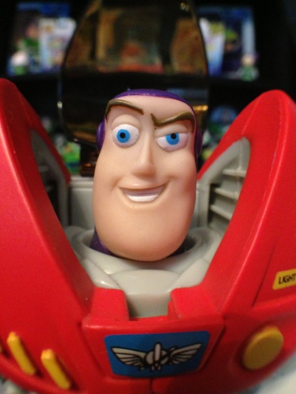 This is the Ultra Buzz Wake Up System. It’s basically a 12" Buzz Lightyear figure made to be an alarm clock. Ultra Buzz was originally supposed to serve the role of Utility Belt Buzz in Toy Story 2.