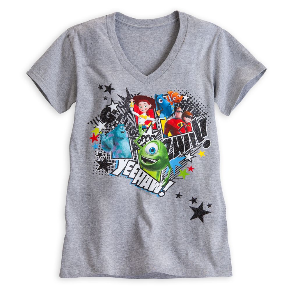 It just arrived today, and I got it for less than $20 with their shirt sale going on right now! It’s so sparklyyyy and it’s got a handful of my faves on it! Major win! And if you’re a guy, they also have a guys’ Pixar shirt out right now, too! I can’t wait to let my fangirl freak flag fly