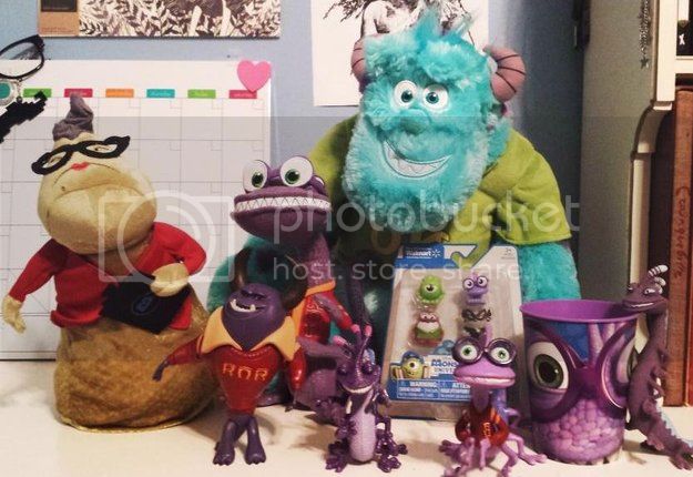Nice collections everyone! I just love looking at people’s merchandise. I suppose I’ll add pictures of my own little collection. I mostly have Monsters, Inc and Monsters University merch, since they’re probably my favorite Pixar franchise (though it’s hard to tell if I like MI or the Toy Story movies better…I love them both so much). Toy Story merch is very expensive by comparison, so that plays a part in it too.