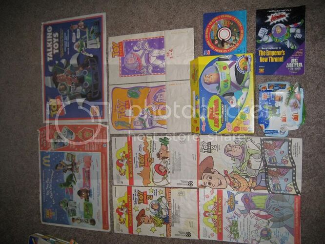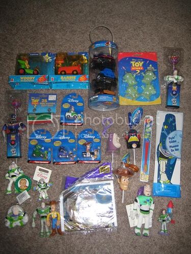 legionsofgotham - Woah! You really need to send John Lasseter photos of your collection! You have TONS of stuff - I never realised that much Toy Story stuff was even made. My favourites are the happy meal box and the Buzz Lightyear spaceship.