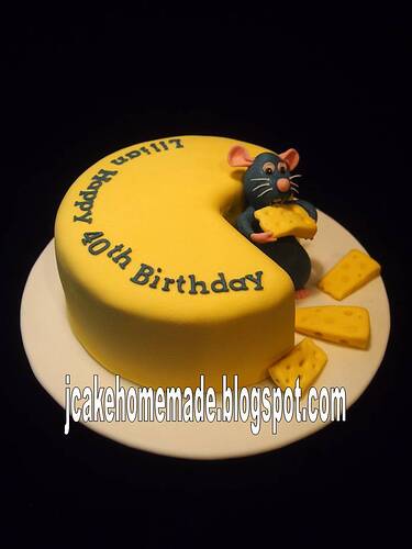I envy Lilian for getting such a cool cake, and I admire the person for being a fan of animated films at the age of 40 (nothing wrong with that, but I think a lot of ‘grown-ups’ would think otherwise). Unless he/she happened to have a pet rat or something, in which case the cake would have nothing to do with Ratatouille then.