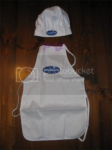 Oh, man. There are tons of cool offers for Ratatouille in the US… We’ll be lucky if we get a couple of special gifts. I’m loving the simple design of the apron and chef’s hat. Thanks for the pics. The material is a lot better quality than with the chef’s hat I got at the cinema. Hmm.