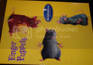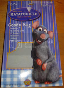 Anyway, I dropped by party city since my brother needed to pick up some things, and I found a Ratatouille section! xD I bought the little goody bag thing- it had a Ratatouille yoyo, a pinball maze, paper finger puppets, and a sticker. Was $2.99 but … ehh, I couldn’t resist. ![]()