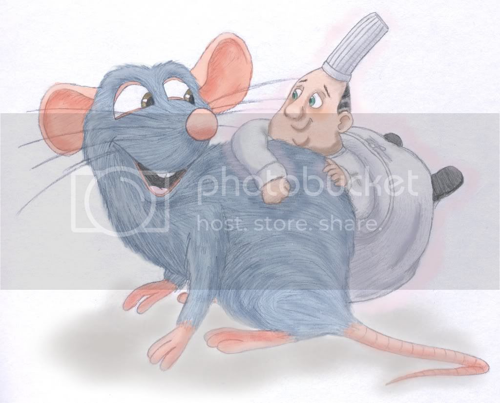 And this is a drawing she did of Remy and Gusteau. the first think I asked her when I saw it was, “Can I post this on Pixar Planet?!?”