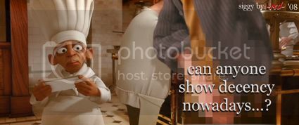 They are hilarious! K9Girl and I were goofing around with our Ratatouille DVD and found that “burping” one, but we couldn’t think of a caption for it. But yours is hilarious! xDDD