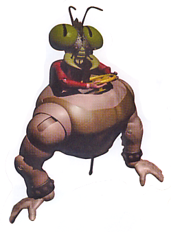 Though, the heads aren’t similar a lot, he has a bug head like…