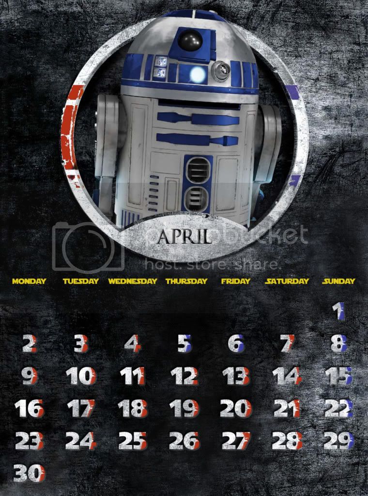 April is for Episode IV, and represents the Rebel Alliance. The character of choice is R2-D2, the main witness of the complete saga, but who shines in his first appearance.