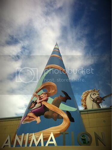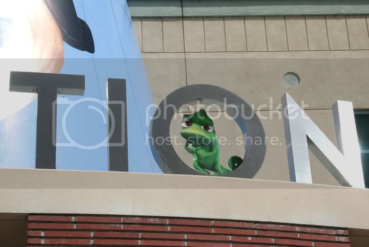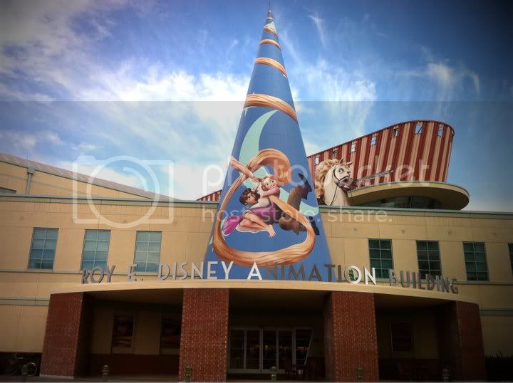 In celebration of the movie coming out, Disney decorated their Animation building with Tangled promo pics. I think it looks super cool!