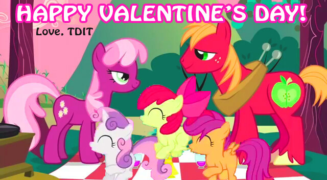 (This one’s a challenge cos’ I couldn’t get a screenshot of the Cutie Mark Crusaders within frame, so I composited them in!)