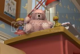 Teddy appears in Toy Story 2 in the Al’s Toy Barn commercial and in the actual store(I know this is true).