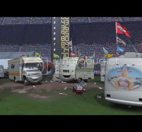 And when I looked at the picture, I noticed something: The mobile home from A Bug’s Life and the mobile home to where Randall is banished are the same. Even the position of the PP Truck is the same. Only the landscape is different.