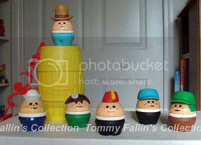 1 black haired tike (black bottom) - In the first Toy story, he was shown with a black trim in one scene, but is white later in the movie and all of toy Story 2. Not sure if an actual little tike toy