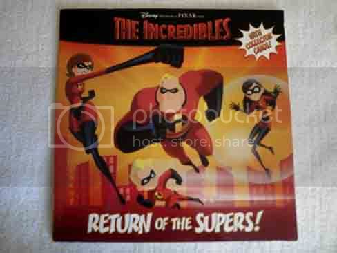 Description: A comic book featuring your favorite super-hero team: The Incredibles! Lovely artwork is featured throughout the book, and collector cards are included. Good condition. There are some scratches and finger-print smears on the back of the book, but that’s about it. Once again, my dad got me this one.