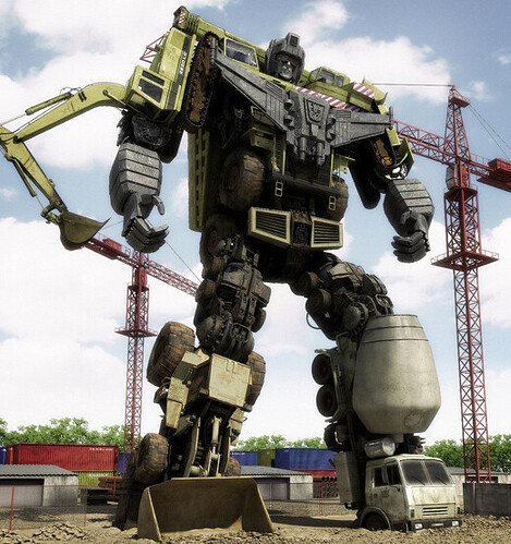 Yes, but if you want to form a gigantic beast to fight your enemy in war, would you have spent time looking everywhere for construction vehicles of various colors, models and designs instead of searching a local construction site that most probably consisted of a single design of construction vehicles?