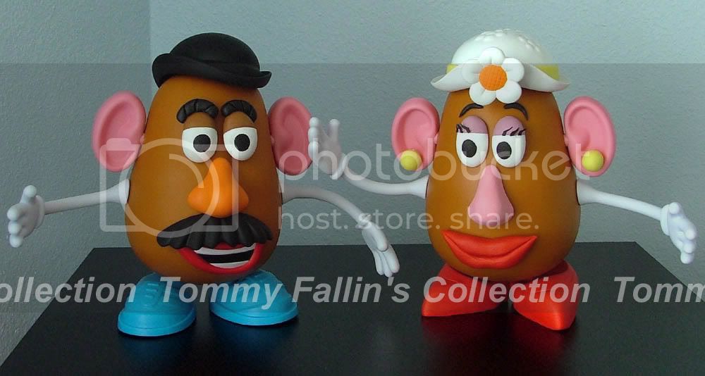 Used the ears and arms from the TSC Potato (obviously), and the hat from the current Mrs. Potato Head being sold, but painted the flower and the hat band to be the correct colors. The feet, eyes, nose, ears, and mouth I made.