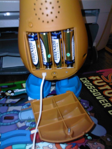 here’s his battery compartment. the grid on his back- pocket makes it hard to be able to function as anything else