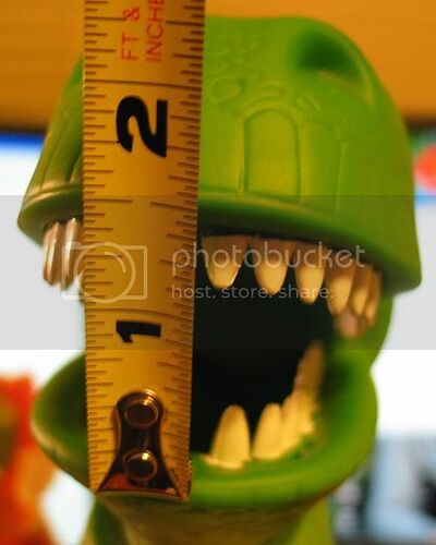 In some photos I think it may just be the way the figure and camera is positioned, (optical illusion…) So I took a measurment of my figure. I measured between his two front teeth on bottom and on top, from lip edge on top and bottom.