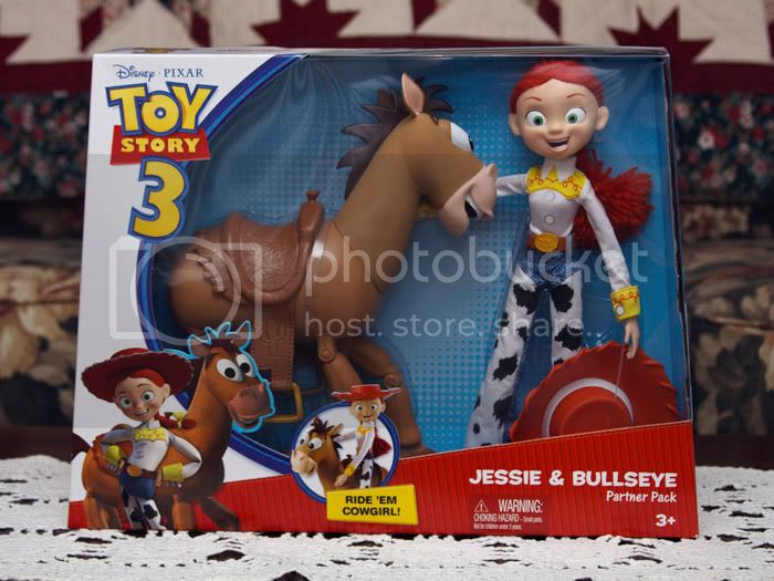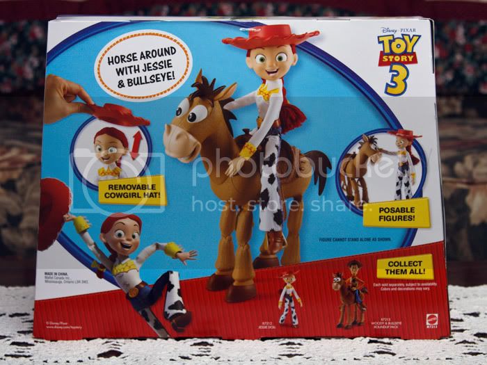 The Jessie is the same as the Barbie-styled Jessie that’s already out, and the Bullseye is a hard plastic “posable” figure that stands about 11 1/2" tall. His front legs have hinges at the joints, but the back legs do not.