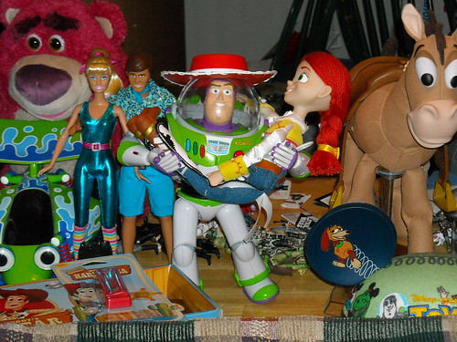 (I just love people’s pictures of their toys “interacting,” since I only have Woody and don’t plan to get the others. Plus I’m a sucker for the cute stuff like Buzz & Jessie—even though I don’t totally buy them [spoil]as a couple,[/spoil] I suspend my disbelief because [spoil]they are cute together[/spoil] )