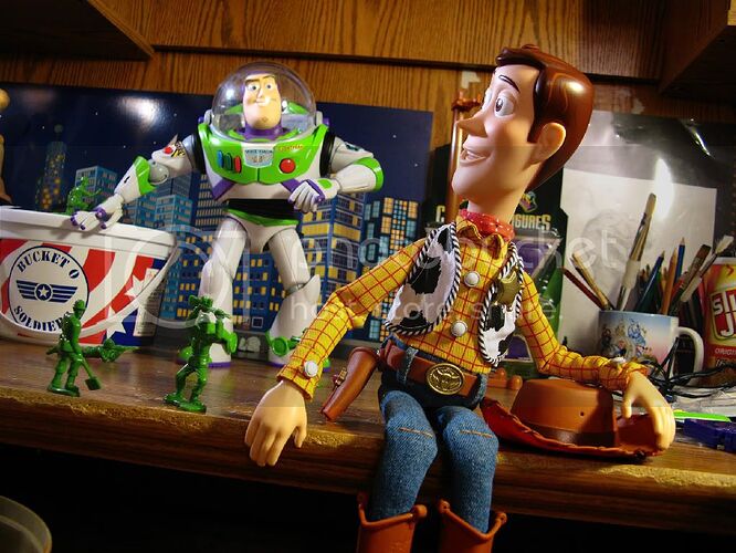 Sweet… great pics Kyle , love that perspective shot of Woody between the legs of Buzz. Too bad Woody’s arms don’t have enough articulation as the 90s one.