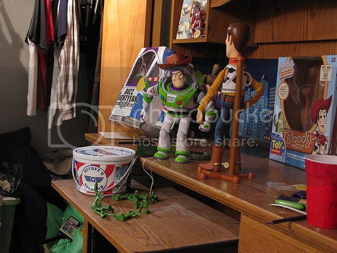 haha nice shots! I opened mine up. Very nice! I did notice the arm issue but its ok. You can switch the modes on the panel located inside the doll. Howeve i noticed when on the play mode, it can talk by itself at any given time. But now that I have Woody I really wanna get Buzz