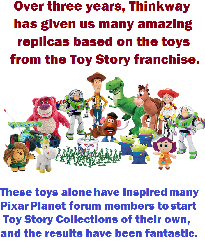 All right, everybody, I need some help here! I just received an Amazon.com gift card that I won in a contest, and I’m seriously thinking of adding onto my Toy Story collection. But considering I’m a rookie when it comes to collecting what appear to be the most expensive toys I’ve ever considered buying (and I mean actual “play” toys, since I do have a couple of collectible Barbie dolls), I need some advice. First off, here’s my wishlist thus far: