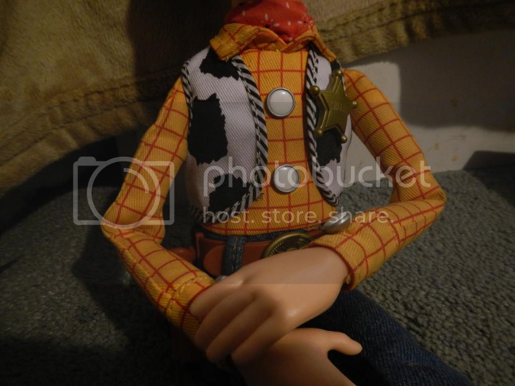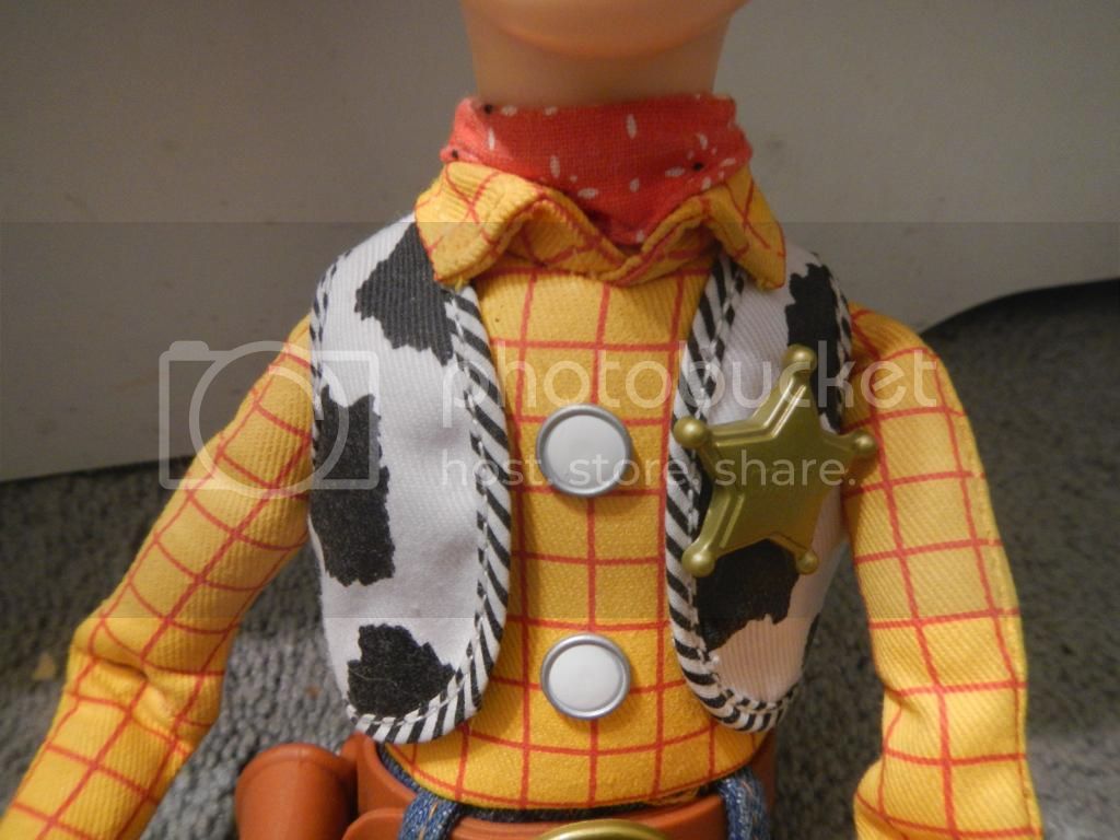 If you look in the last pictures I posed further up the page, you can see I managed to get woody’s vest to fit under his collar like in the films. I was not able to get his collar to stand up and fold over like does in the films (rather impossibly). Thinkway tries to solve this issue by sewing the bottom of the collar to his shirt making if fold over, the problem is, they do not put his vest under the collar. i373.photobucket.com/albums/oo17 … G_0573.jpg this is how he comes from the factory. It looks alright, but is inaccurate.