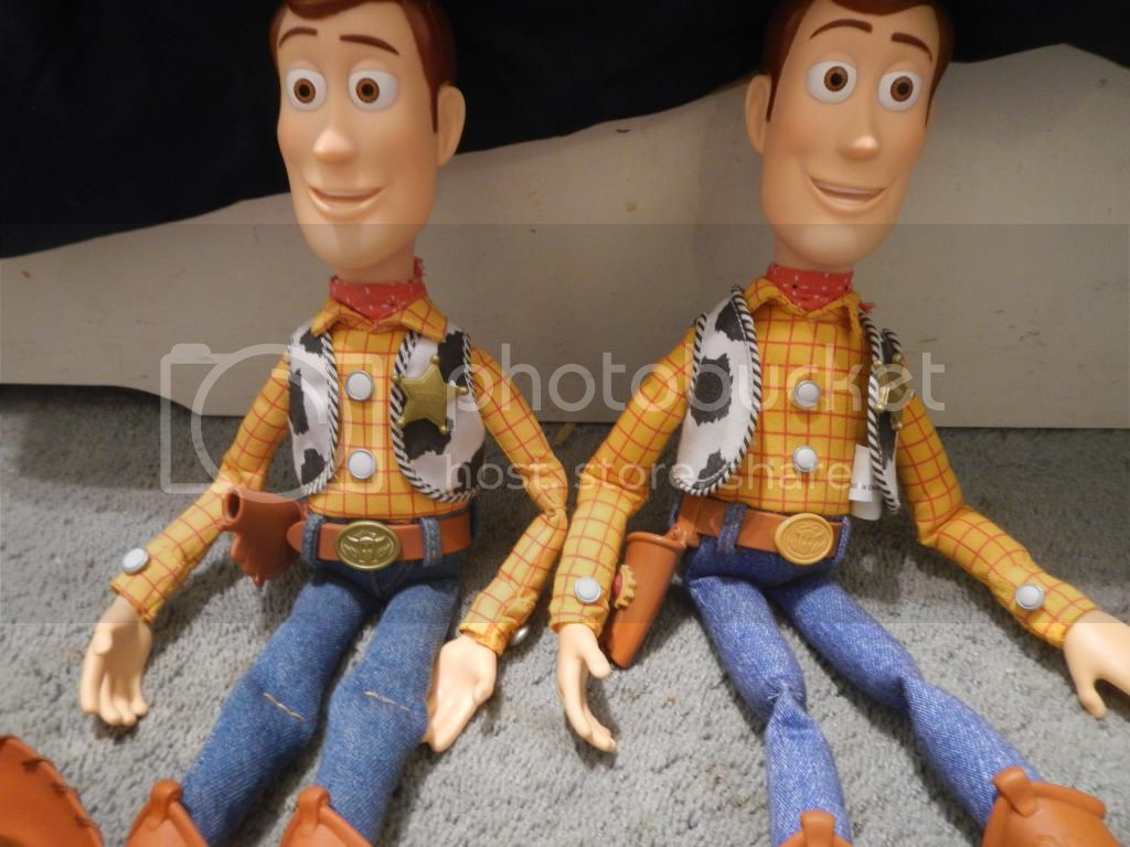 Here’s a comparison showing the regular talking wooding with the former TSC Woody’s buttons and vest next to the TSC Woody with the talking Woody’s former vest and buttons (Sounds confusing!).