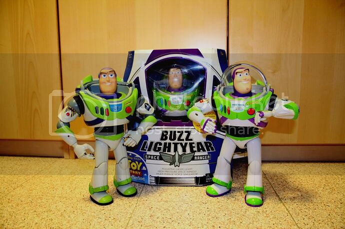The smaller Buz is from Thinkway toys and has the same phrases and sounds like de Original Buzz… That Buzz and Woody were quite common some years ago. As Billbarman says the winds must be placed manually.