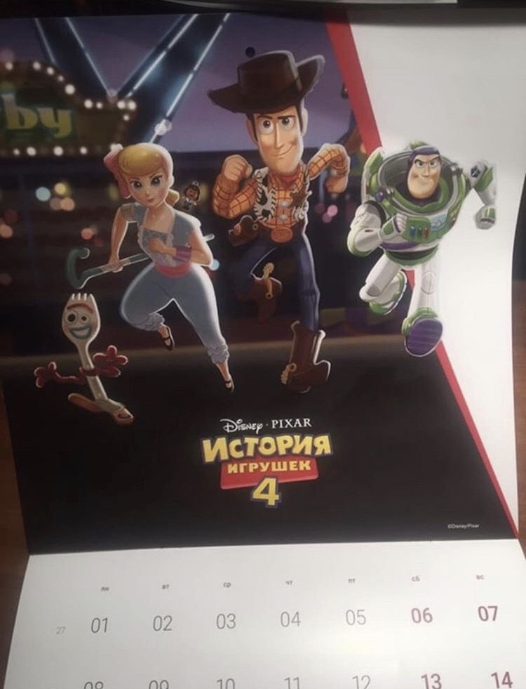Anyway, there’s a full body picture of Bo Peep running with Woody, Buzz, Forky, and some new toy leaked from a Russian calender.