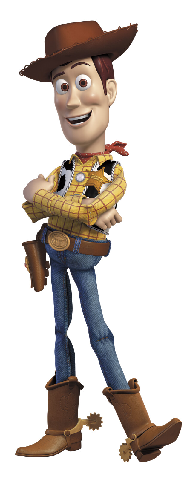 -Woody’s holster, belt and boots have a bumpy texture on it.