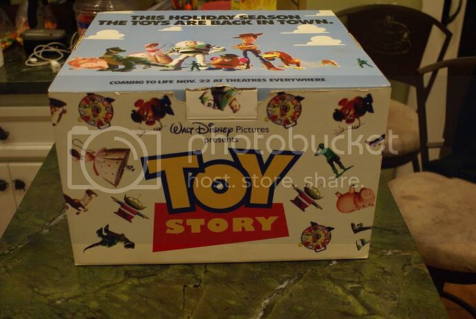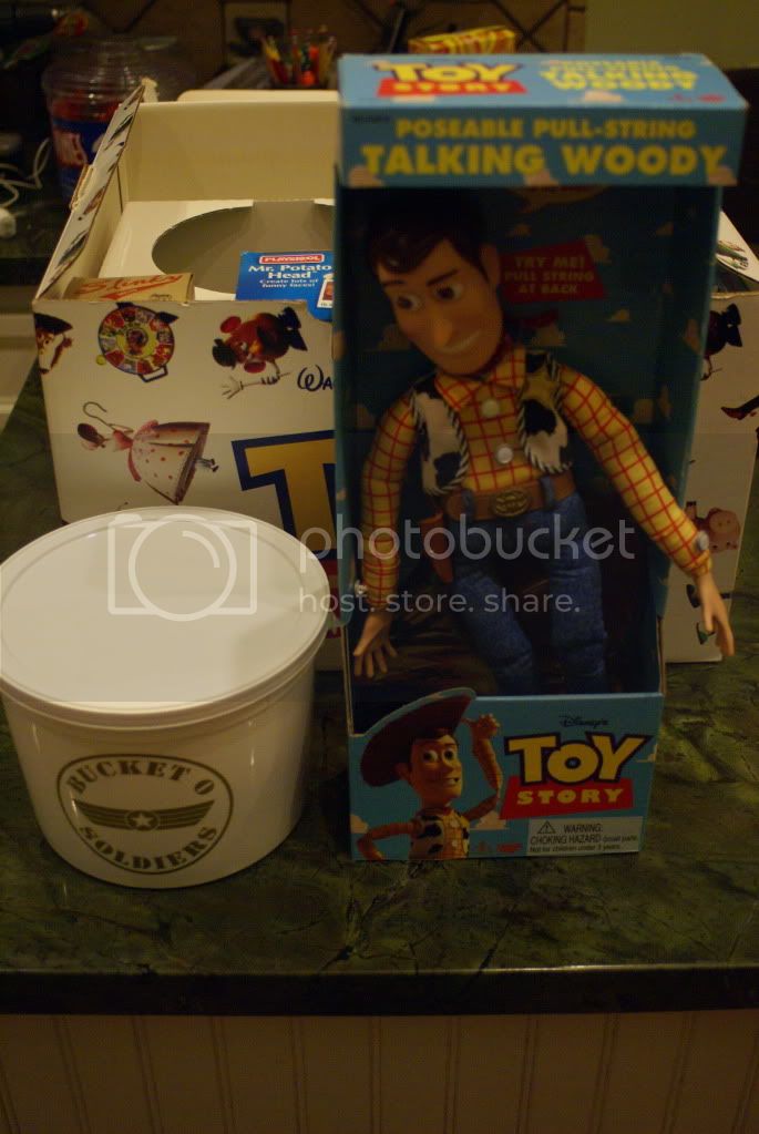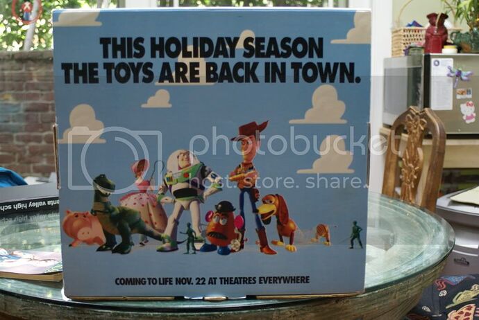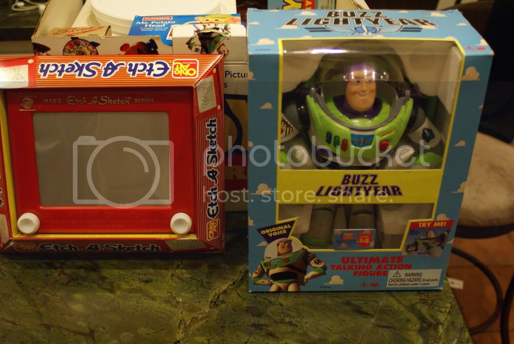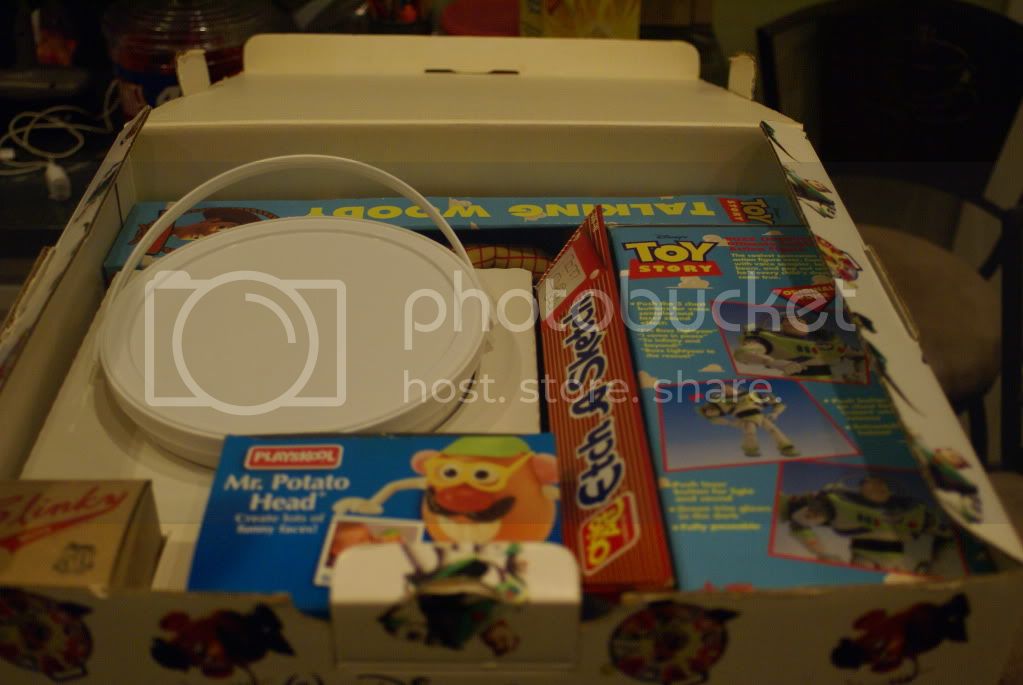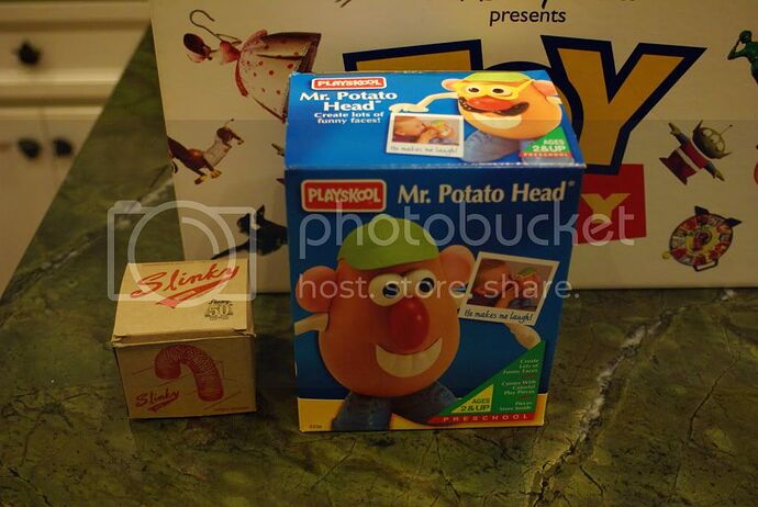 Never seen it before, but it has to be some kind of advanced promotional item. The Buzz and Woody are both first editions (they were replaced very early on), and the Bucket ‘O’ Soldiers is different from the retail version… the bucket doesn’t even look finished. The Etch A Sketch, Slinky, and the Mr. Potato Head were just the usual retail ones at the time. Slinky Dog wasn’t being made until 1996, I believe, and so was the movie-inspired Mr. Potato Head. Some early Potato Heads like that even had stickers promoting Toy Story on the box, but this one even predates that.