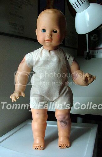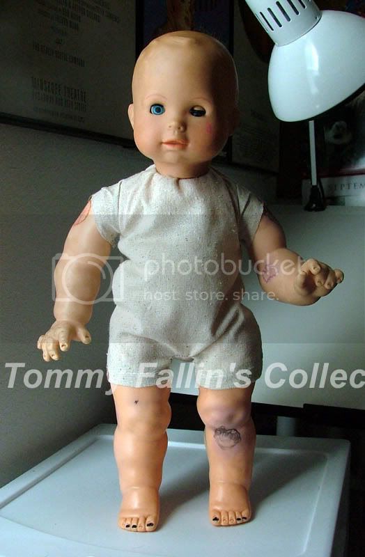 I found a vintage baby doll on eBay. The doll was 18". I popped off it’s head, and am actually using that head for Baby Face (for which I am still waiting on my erector set.). The head came from a 16" doll I had originally bought with the intent of just turning the doll into Big Baby. But the doll was way too small when it came in. I ended up using that head.