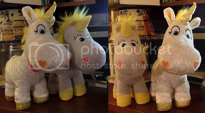 Instead of sleeping last night I went ahead and did the slight modifications I wanted to do to Buttercup and Lenny. Lenny I just printed black and white eye balls and taped them in place, so they will be easily removed if I wish. I am including a picture of all three Lennys. The Burger King, the Toy Story and Beyond, and the Disney on Ice. The Disney on Ice one feels a little too big to me. I still havenāt decided if he is going to be on display, or if I am going to keep out the Toy Story and Beyond one, which has a slightly more acurate sculpt but feels a little too smallā¦the perfect Lenny would be somewhere between these two.