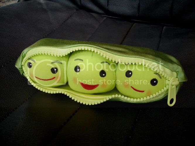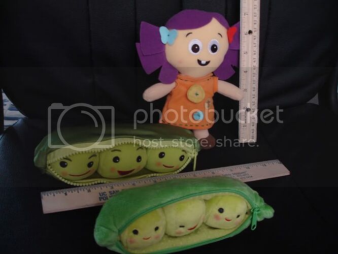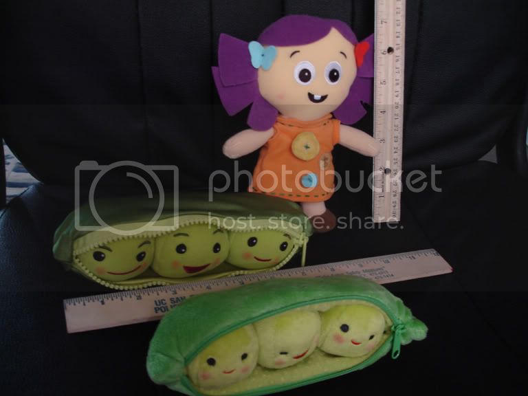 These peas are closer to model than the Disney Store version, but the quality of the DS one is noticeably better. The BB one uses thin fabric on the pod and the peas aren’t evenly stuffed. Displays nicely enough, though. I bent the zipper to make it look more like the movie model.
