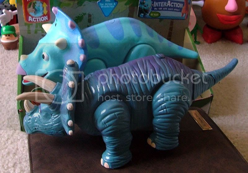 Earlier there was some question about Tank, the triceratops from Dinosaur Train, and whether it could be modified into a reasonably sized substitute for Trixie. Found one at the Target last week. It is still too small. I took it back because it is no larger than the toy I already repainted. Guess after I am done with the Sunnyside collection I will need to sculpt a Trixie from scratch, unless Thinkway decides to surprise us with news of one in the coming weeks (but I am officially not holding my breath.)