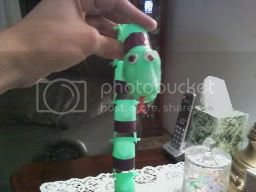 Today, I was in Chinatown (in downtown Chicago) and I came across a green plastic snake. It was the right color, and close to right head sculpt of the Toy Story snake. Like all plastic snakes, it moved horizontal and not vertical. It also had some stickers on each link that looked stupid. However, I removed the eyes, and changed their position. I also removed the head and modified it slightly to make the snake move vertically. I then removed the current stickers and replaced them with more “Toy Story Snake-like” stickers. The result I think looks pretty good. An exact replica? No, but what do you guys think?