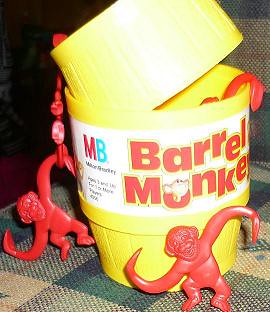 I didnt know they were Milton Bradley brand till i opened them. The only bad thing is that only 4 of the monkeys are red, the rest are yellow and blue, maybe just paint the rest red. Thought id post it in case anyone is looking for some.