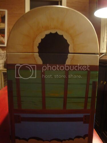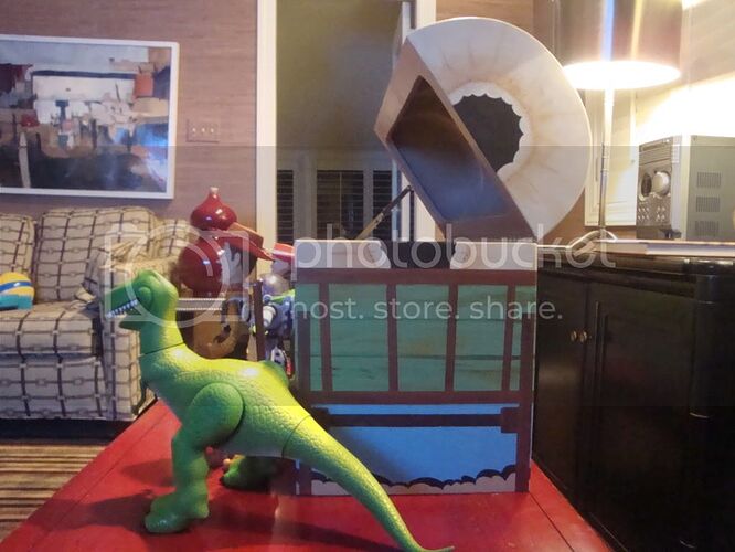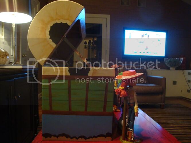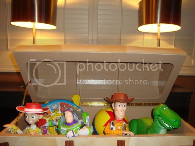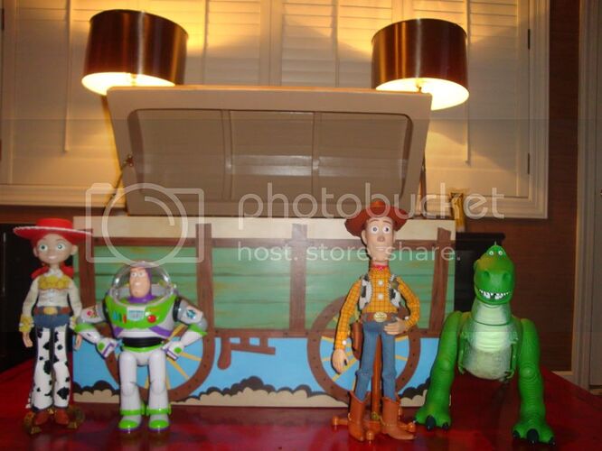 I suppose I should have explained this in my post above, when watching toy story with my dad he asked if I had the toy box, I obviously didnât and being a great handy man he started making with the measurements I supplied him with. The top arch isnât completely to scale but he explained to me that it was the hardest part to make so I think that it turned great all in all. Once finished with the making of the chest, my mom got a fantastic painter for the job, a little expensive but as long as its good