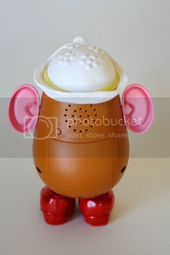 I think that Mrs. Potato Head is OUTSTANDING! Spiritmama’s pieces were put on to the TSC Mr. Potato Head pegs which means I can put the pieces where ever I like, just like in the films! The only problem I could find with her is the orange part of her flower is supposed to have a checkered pattern, which isn’t even a big deal. The reason she doesn’t have arms in the pictures is because they didn’t need to be modified.